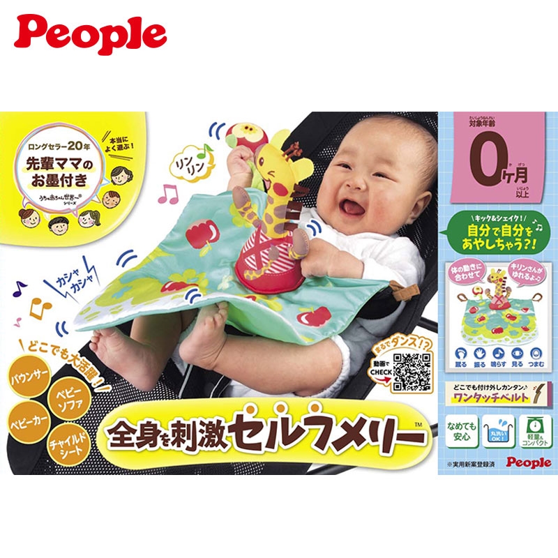 ワンタッチベルトで取り付け簡単。 自分で自分をあやしちゃうセルフメリーです。 バウンサー・ベビーソファ・ベビーカー チャイルドシートなどどこでも活躍。 ゴキゲンでいられる工夫が盛りだくさん。 体の動きに合わせて揺れる刺激たっぷりキリン。 あんよキックがとまらない熱中足けり布。 おててとおくちにジャストフィットリンリンりんご。