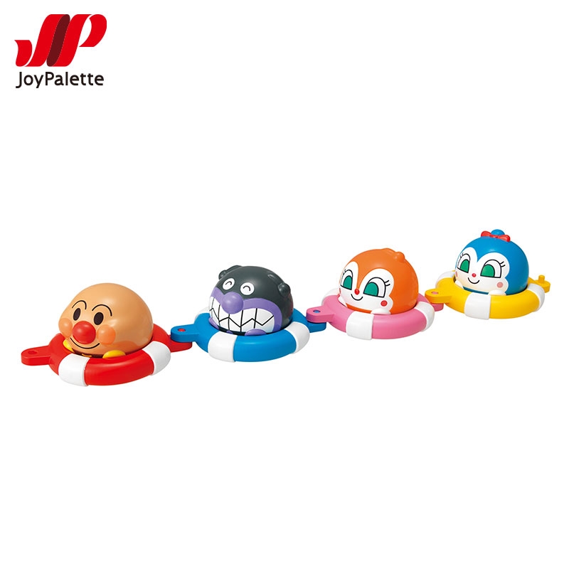 お風呂でプカプカ浮かべて遊べます。 うきわ前後には連結フックがついていて単体で浮かべて遊べるだけでなく、 アンパンマンと仲間たちをつなげて楽しめます。 人形は1.5歳児でも握りやすいサイズ、柔らかい素材で更につかみやすい。 また底面が平らなのでどこにでも置けて楽しめます。 人形とうきわの組み合わせをいろいろ楽しめます。