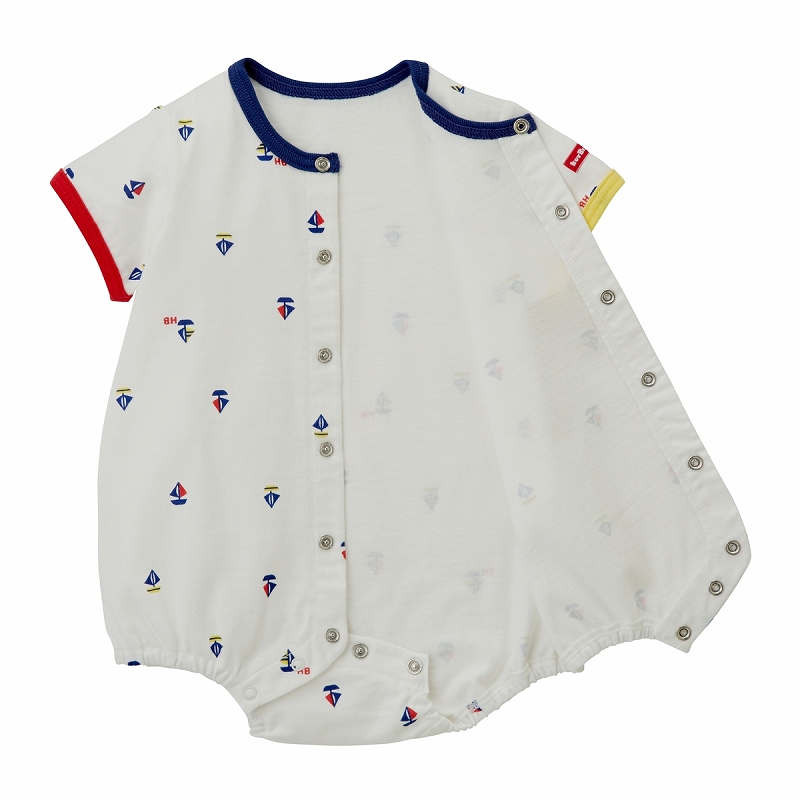 ●素材= 40/2天竺プリント ●品質= 綿100%(リブ部分)綿72%、ポリエステル28% ●寸法(約・cm)= 70 / 80 : 身幅 27/28、 着丈 41.5/45.5、 袖丈 8 /8.5