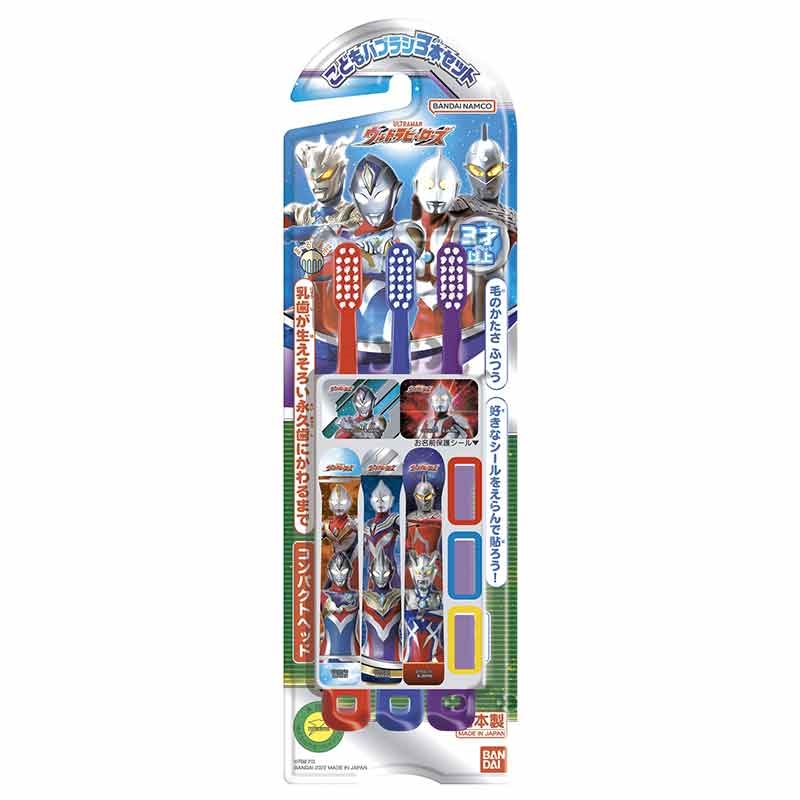 ウルトラヒーローのデザインされた置いても使っても楽しいハブラシです。 デザインシールは4種類の中から選ぶ事が出来ます。 奥歯まで磨きやすいコンパクトヘッドになっております。 丸い毛先でお子様の歯と歯茎をやさしく磨きます。 (c) TSUBURAYA PRODUCTIONS