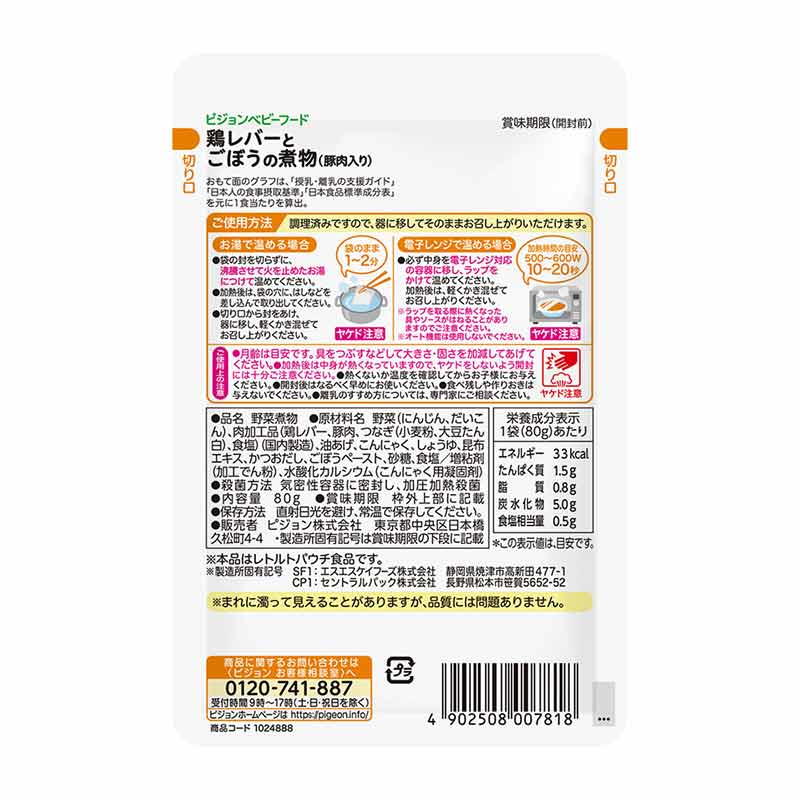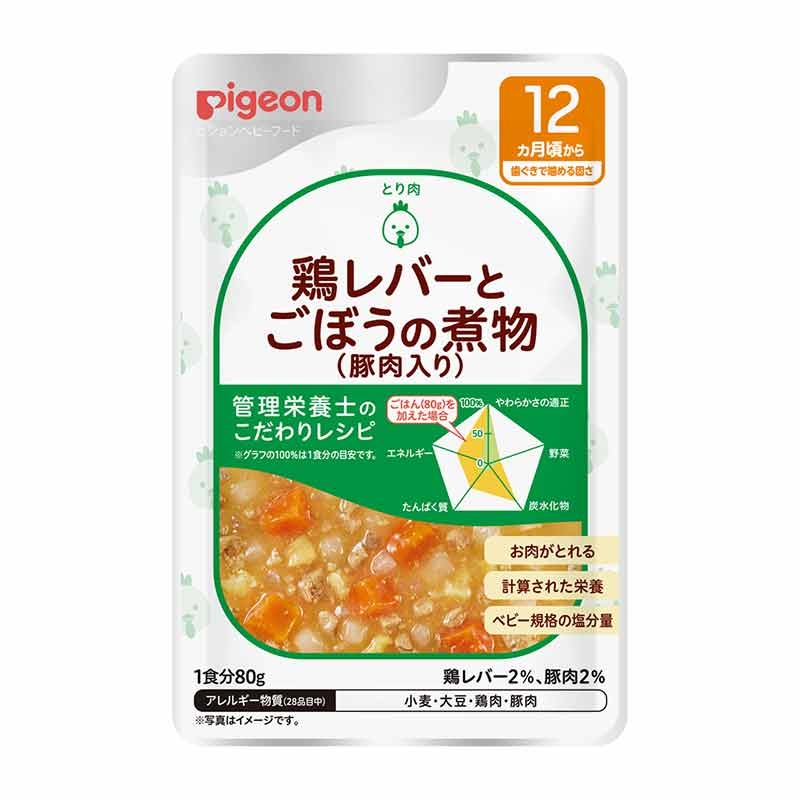 レーダーチャートが付いているので栄養バランスが一目でわかる管理栄養士のこだわりレシピ たんぱく質アイコンでメニュー選びをサポートします 食育レシピの特徴 ●昆布だしのしみわたる根菜たっぷり和風の煮物です。 ●12ヵ月頃からの赤ちゃんのかむ力の発達に合わせて、具材の大きさや固さを調整しています。 ●着色料、香料、保存料は使用しておりません。 ●内容量 80 g