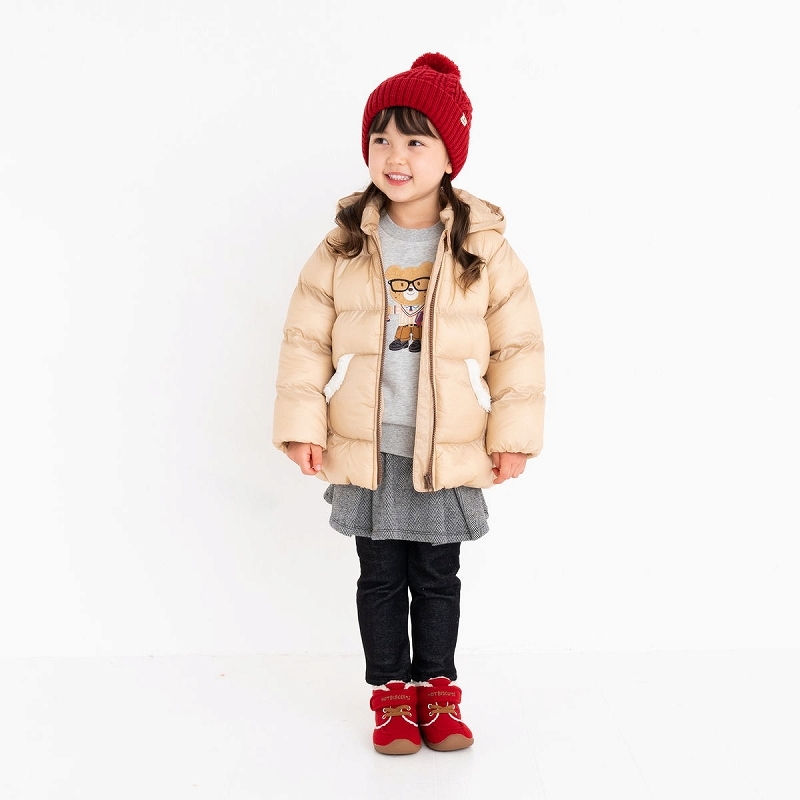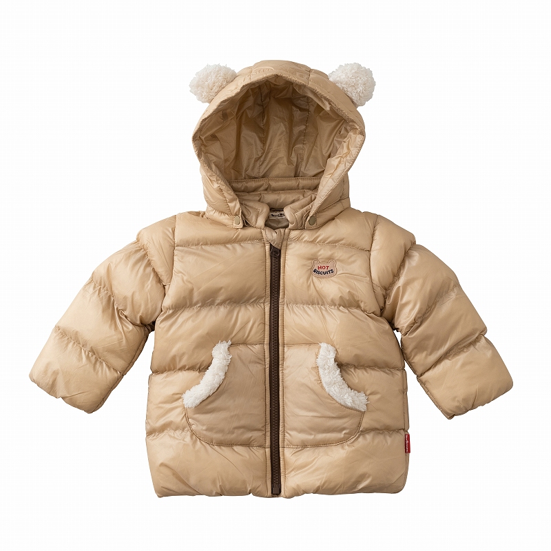 ●仕様=●フードは取り外し可能。フード禁止の保育園や幼稚園でもご着用いただけます ●素材=(表地・裏地)ポリエステルタフタ(耳・ポケット口)ボアフリース ●品質= (表地・裏地・中綿)ポリエステル100% ●寸法(約・cm)= 80/ 90 : 着丈 39/42、 身幅 35/36.5、 袖丈 28.5/31.8