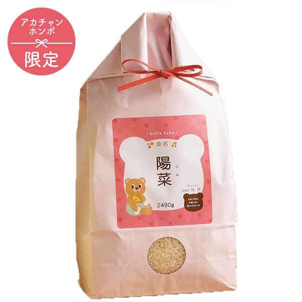 甘く、粘りがあって香りのよい南魚沼産のこしひかりを、赤ちゃんの重さ分だけ詰めてお届け。 パッケージに、お名前やお誕生日などが入ります。 ※こちらの商品は、簡易包装での対応となります。 ※手付袋はお付けできません。