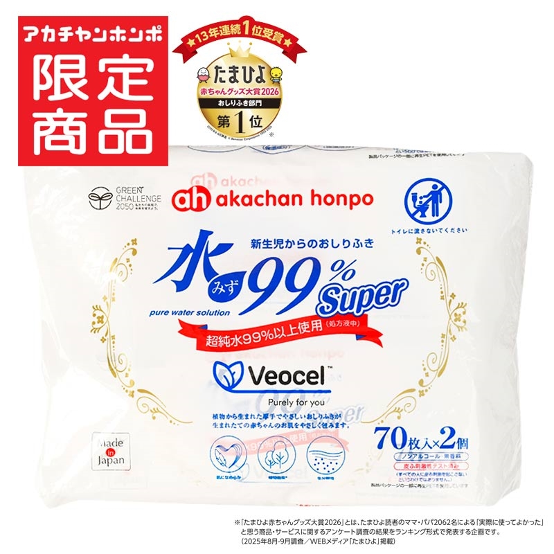 VEOCEL(TM) Purely for you VEOCEL(TM) ブランドの繊維は植物由来 植物由来のVEOCEL(TM)(ヴェオセル (TM))繊維は肌にやさしく、しかもクリーンな繊維として認証されています。 ●肌にやさしい ヴェオセル (TM) 繊維は天然由来のなめらかさとやさしい肌触り。 ●植物由来 詳しくはwww.veocel.comをご覧ください。 ヴェオセル (TM) 繊維の原料はサステナブルな植林法で管理された森林由来の再生可能な木材です。 ●生分解性 天然素材に由来するヴェオセル (TM) 繊維は原材料へと分解し、自然環境に還る力を持っています。 VEOCEL(TM)とヴェオセル (TM) はLenzing AGの商標です。 新生児からのおしりふき 超純水99%以上使用(処方液中) パラベン不使用 グルコシルセラミド配合(保湿成分) 加水分解ヒアルロン酸配合(保湿成分) ノンアルコール・無香料 皮ふ刺激性テスト済み (すべての人に皮ふ刺激を起こさないというわけではありません。) ※トイレに流せません。