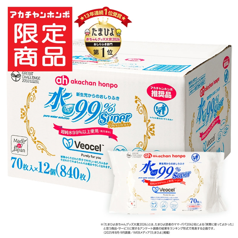 VEOCEL(TM) Purely for you VEOCEL(TM) ブランドの繊維は植物由来 植物由来のVEOCEL(TM) (ヴェオセル (TM))繊維は肌にやさしく、しかもクリーンな繊維として認証されています。 ●肌にやさしい ヴェオセル (TM) 繊維は天然由来のなめらかさとやさしい肌触り。 ●植物由来 詳しくはwww.veocel.comをご覧ください。 ヴェオセル (TM) 繊維の原料はサステナブルな植林法で管理された森林由来の再生可能な木材です。 ●生分解性 天然素材に由来するヴェオセル (TM) 繊維は原材料へと分解し、自然環境に還る力を持っています。 VEOCEL(TM)とヴェオセル (TM) はLenzing AGの商標です。 新生児からのおしりふき 超純水99%以上使用(処方液中) パラベン不使用 グルコシルセラミド配合(保湿成分) 加水分解ヒアルロン酸配合(保湿成分) ノンアルコール・無香料 皮ふ刺激性テスト済み (すべての人に皮ふ刺激を起こさないというわけではありません。) ※トイレに流せません。