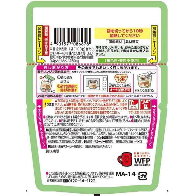●原材料名:野菜(じゃがいも(国産)、にんじん、たまねぎ)、コーンスターチ、牛そぼろ、炒めたまねぎ、しょうゆ(大豆を含む)、砂糖、しいたけ、こんぶだし、食塩、かつお節/炭酸カルシウム