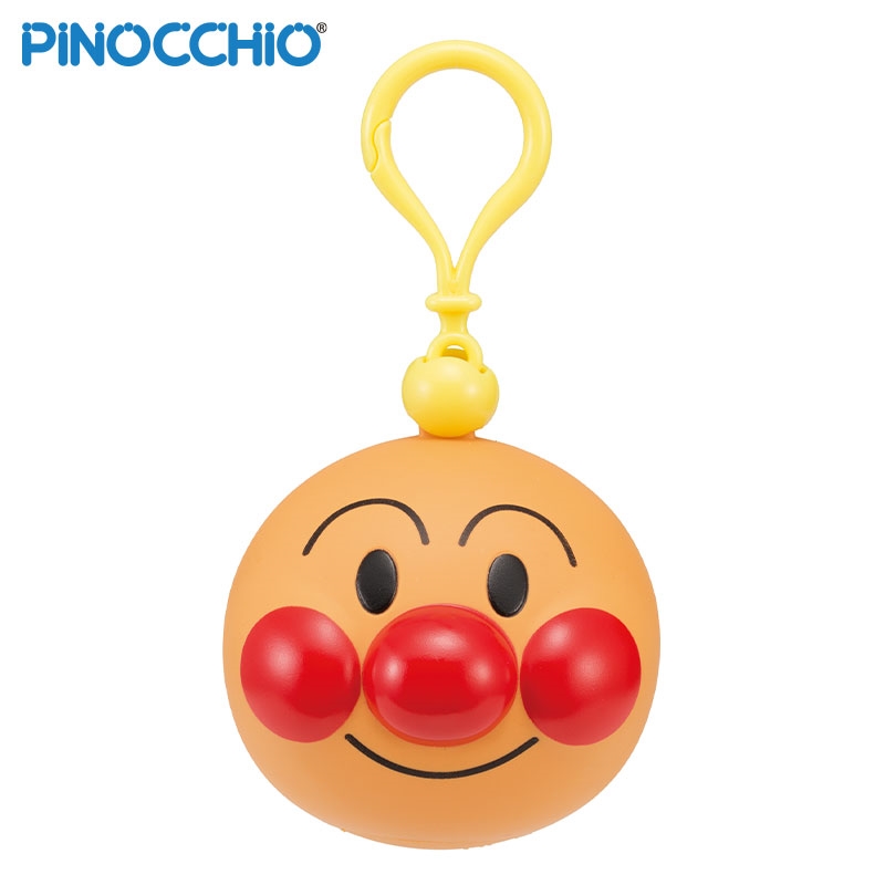 アンパンマンのかおの形をしたキーホルダーです。 かおを握るとピッピと笛が鳴り、あんこが飛び出ます。 音とギミックが楽しく、握るとクセになる。 フック付きで、バッグ・ベビーカーなどに取り付け持ち運んで遊べます。