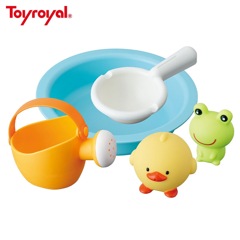 抗菌、防カビ加工のバストーイ。 やわらかくて、こわれにくい安心素材です。 おふろ遊びで人気のジョーロやせんめんき、ヒシャクの入ったセットです。 またカエルの人形とアヒルのかわいいみずてっぽうも入った充実の内容になっています。