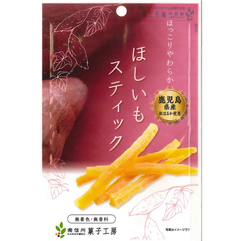 鹿児島県産紅はるかを食べやすいスティック状にカットした干し芋です。 使用原料はさつまいものみです。 さつまいもの甘みを凝縮し、しっとり柔らかく仕上げる製法で、素材本来のおいしさをお楽しみいただけます。