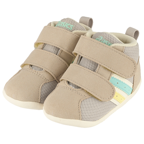 歩きはじめの約3カ月間の赤ちゃん向けに展開するFIRSTシリーズのキッズシューズ。つま先を大きく巻き上げる形状でつまずきにくくし、スムーズな歩行をサポートします。さらに靴底全体のエッジを丸くすることで、ぐらつきやすい赤ちゃんの歩行で起こりがちなひっかかりも軽減。フィット感の調節がしやすい2本ベルトで、履き口が大きく開くため脱ぎ履きもしやすいです。ウエアとコーディネートしやすい、愛らしいカラーリングです。