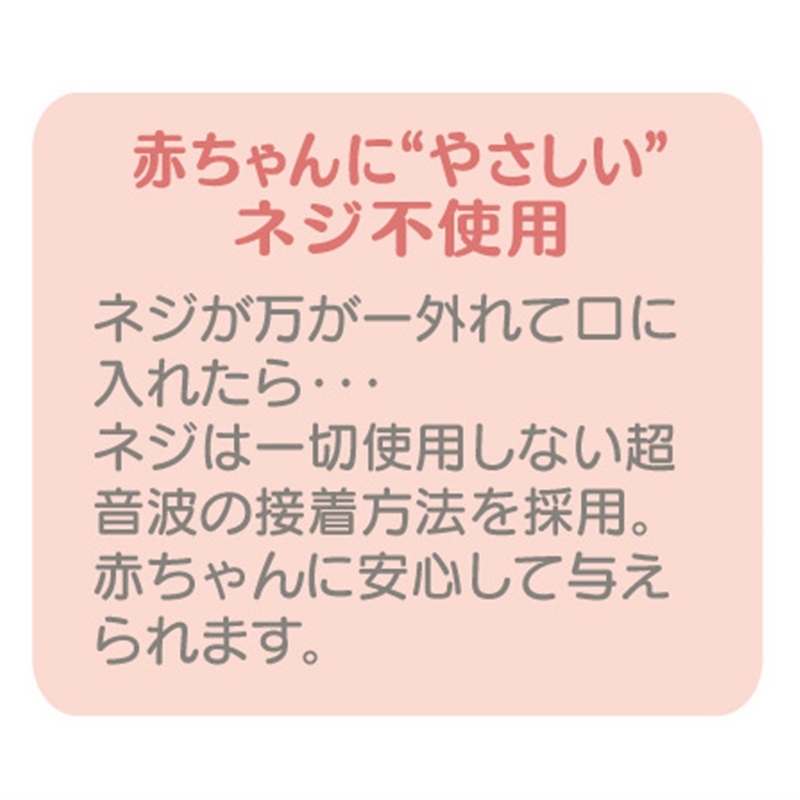 ●対象年齢:2ヵ月~ ●素材:ABS ●サイズ(約・㎜):高さ91×幅78×奥行43 ●重量:40g ※パッケージ順序切替につき、パッケージ画像が異なる場合がございます。