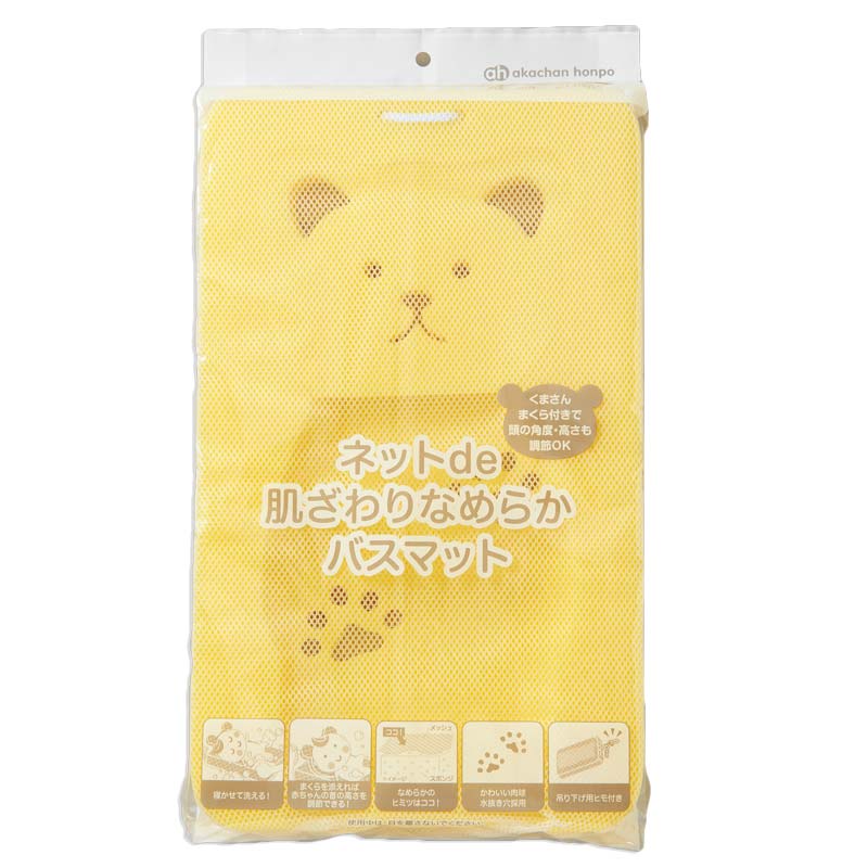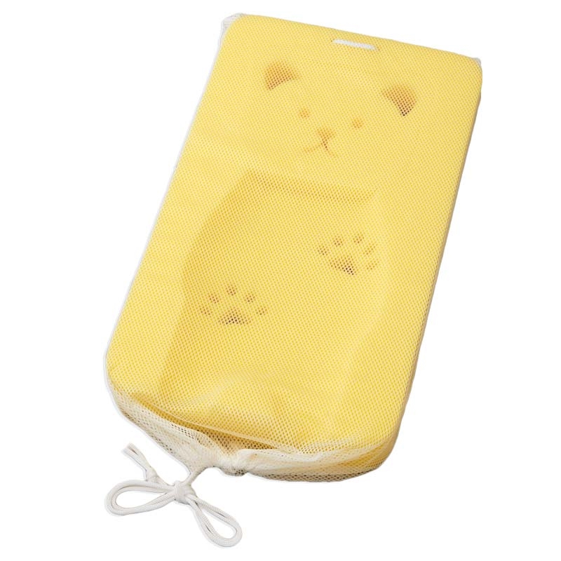 赤ちゃんを寝かせて洗うことができ、付属のくまさんまくらを添えれば赤ちゃんの首の高さを調整ができます。 メッシュ素材のネットを本体にかぶせていますので肌ざわりもなめらかです。 本体に肉球型の水抜き穴を採用しています。 吊り下げ用の紐もついていますので、フックにかけることができます。 バスマットの上に水が溜まることがありますので、シャワーを連続的に使用するときはご注意ください
