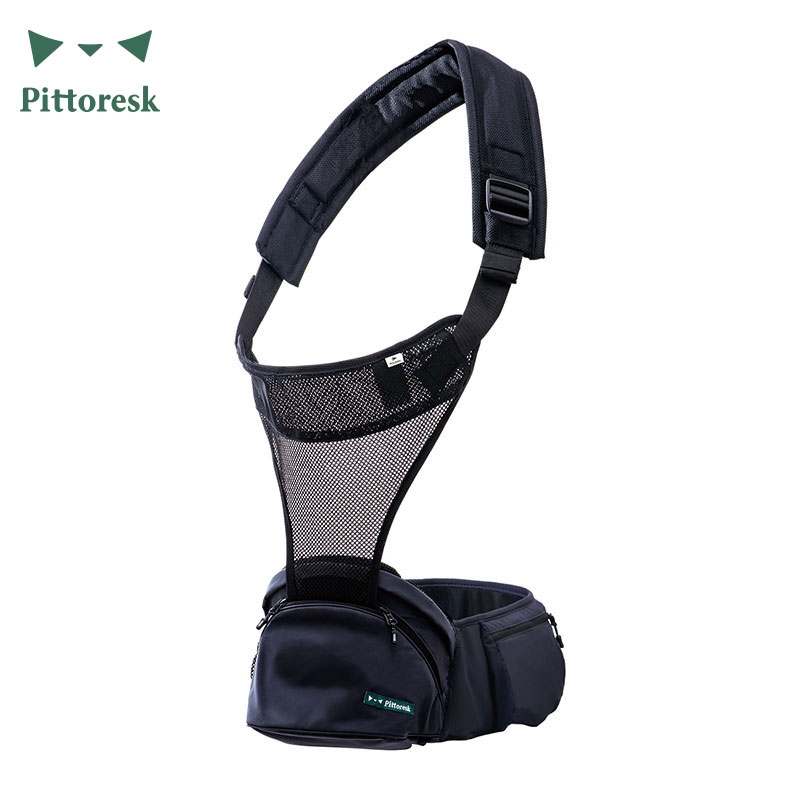 ・おなかと腰への負担を軽減 日本人の体型にフィットする設計と幅広腰ベルトで赤ちゃんの重さを分散。 中の芯材を包みこむよう配置されたやわらかクッションでおなかへの接触をやわらげ快適な着け心地に。 ・ずり落ち防止 台座に角度をつけ赤ちゃんをパパ、ママに寄り添う姿勢に、さらに、ラッキーオリジナルのストッパーで赤ちゃんのずり落ちを防止。 ・便利な大容量収納 ショルダーパーツも取り外さず収納可能。 ・Pittoreskこだわり仕様 軽量かつ質感にこだわった生地とマット仕上げのファスナーを採用。 タウンユースだけでなく、アウトドアシーンにもマッチする仕上がりに。