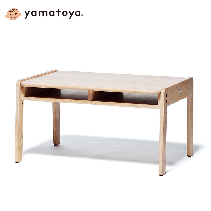 みんなで使える大きなサイズのテーブル。向き合って遊んだり、お絵かきしたり。 成長に合わせ高さを3段階に調整できます。キッズチェアを使うと高さもぴったりで、2脚横並びに入ります。 テーブルのどちらからでも使用できるオープン棚です。 備考 商標登録 第5859111号