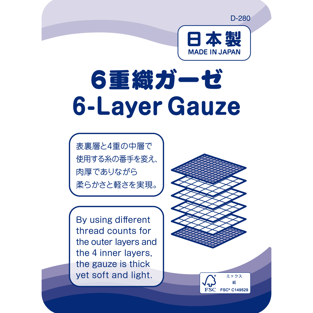 ●素材=六重織ガーゼジャカード ●品質=綿 100%、(パイピング) 綿 73%、複合繊維(ポリエステル) 27% ●寸法(約・cm)=W48×H60cm