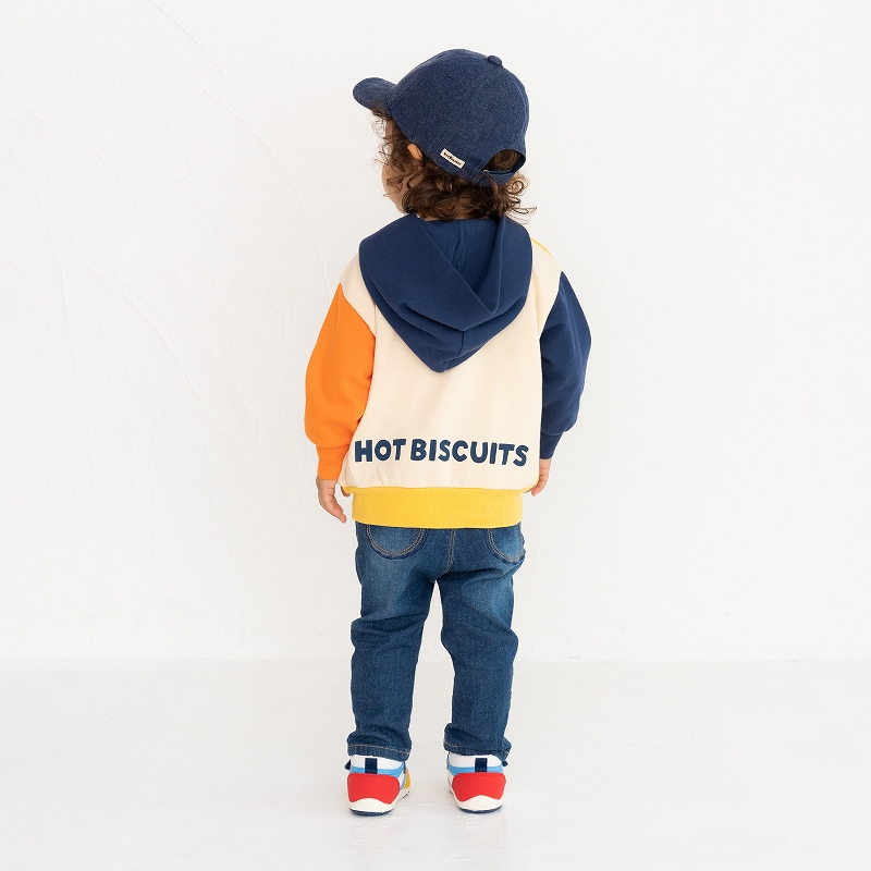 前後で雰囲気がガラッと変わる配色がポイントのパーカー(フーディ)。 ロゴプリントが背面にもあり、バックスタイルもかわいく決まります★ 丸みのあるシルエットでゆったりしているので、動きやすく、 プルオーバーなので着せやすい。 男の子女の子ともに着やすいカラーで、 デニムのパンツやスカートなどと合わせたきょうだいペアのコーディネートもおすすめです★ 季節の変わり目に重宝する、厚すぎず薄すぎないミニ裏毛素材で、 秋口から春先まで3シーズンお使いいただけます。