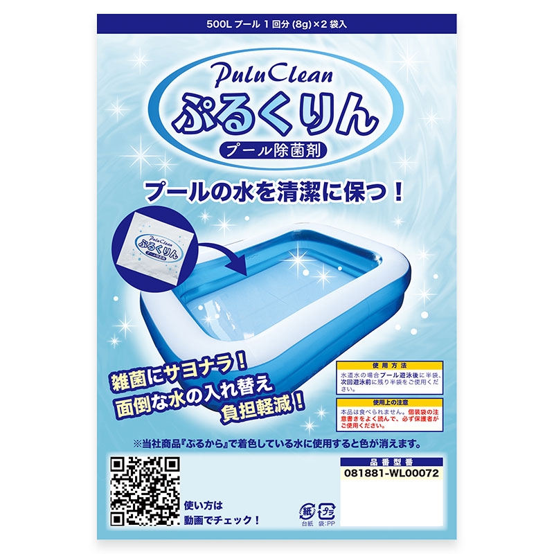 プールの水を清潔に保ちます。 500Lプール1回分(8g)×2袋入り。 水道水を使う場合は本品を入れず、そのままご遊泳できます。 500Lのプールの水を目安とし、遊泳後に半分量(4g)を投入し、よく撹拌してください。 次回ご遊泳前に残りの半分量をいれてご遊泳ください。