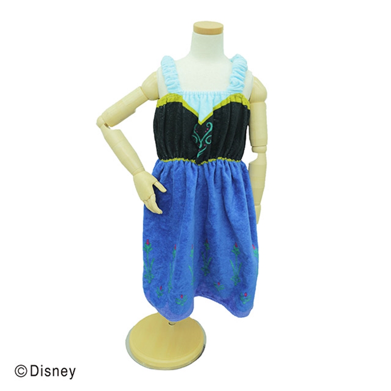 ディズニープリンセスそれぞれのドレスに合わせてシルエット・フリルのデザインに変化を付けています。 まるでドレスを着ているような豪華なバスドレスです。 体にフィットするギャザーと、肩ひも付きなのでずり落ちません。