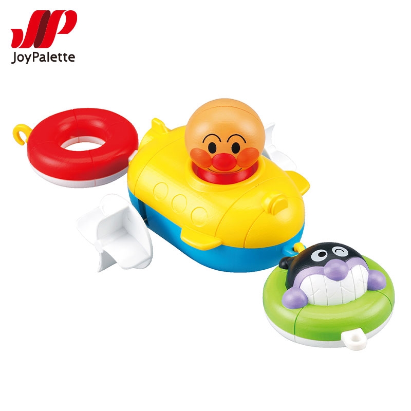 お風呂に浮かべてアンパンマンのサブマリンを動かそう。 アンパンマンの頭を回すとゼンマイが巻かれて、サブマリンが前に進みます。 アンパンマンのサブマリン、ばいきんまんがのったうきわ、赤いうきわはつけかえて遊べます。