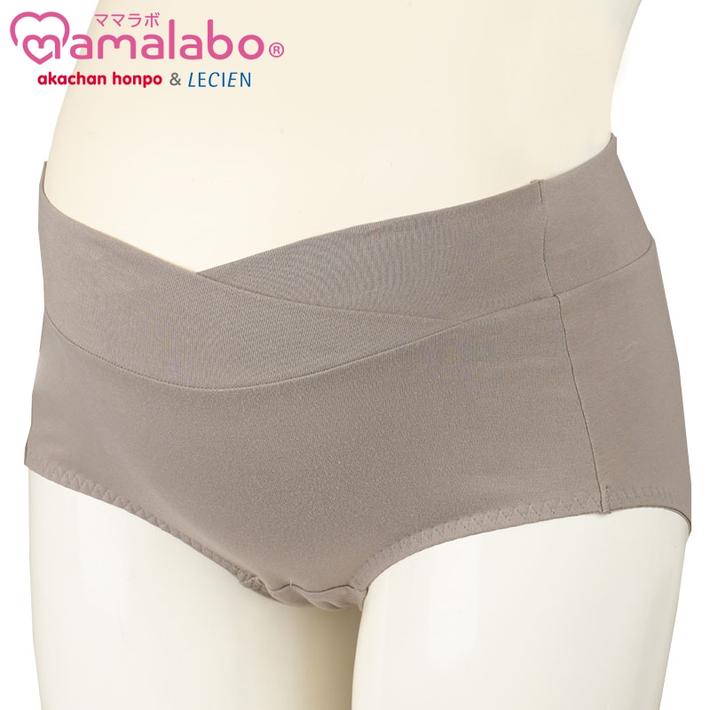 ウエスト部分をクロス仕様にすることでやさしくフィットし、産前から産後まで長い期間お使い頂けます。 なめらかタッチが気持ちいい綿混素材を使用しています。マチ部分は体調変化に気づけるよう白地にしております。 洗濯ネームは肌当たりに配慮して外付け仕様にしています。