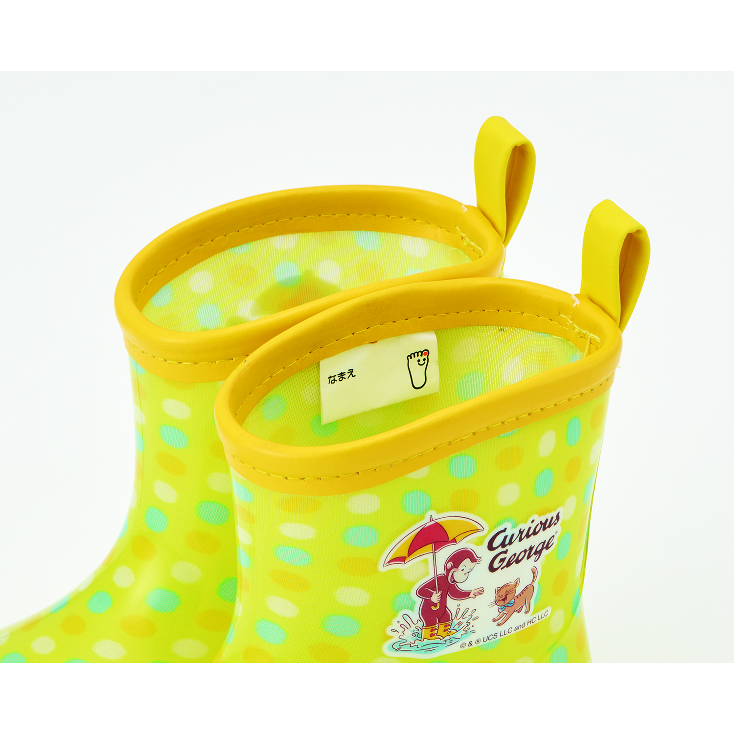雨の日も楽しくお出かけ。キャラクター柄のキッズレインブーツです。底までかわいい総柄入り。他人の靴と間違えないネームタグ付き。左右がわかるイラスト付きなので左右も間違えません。ブーツの後ろ側に反射テープ付き。