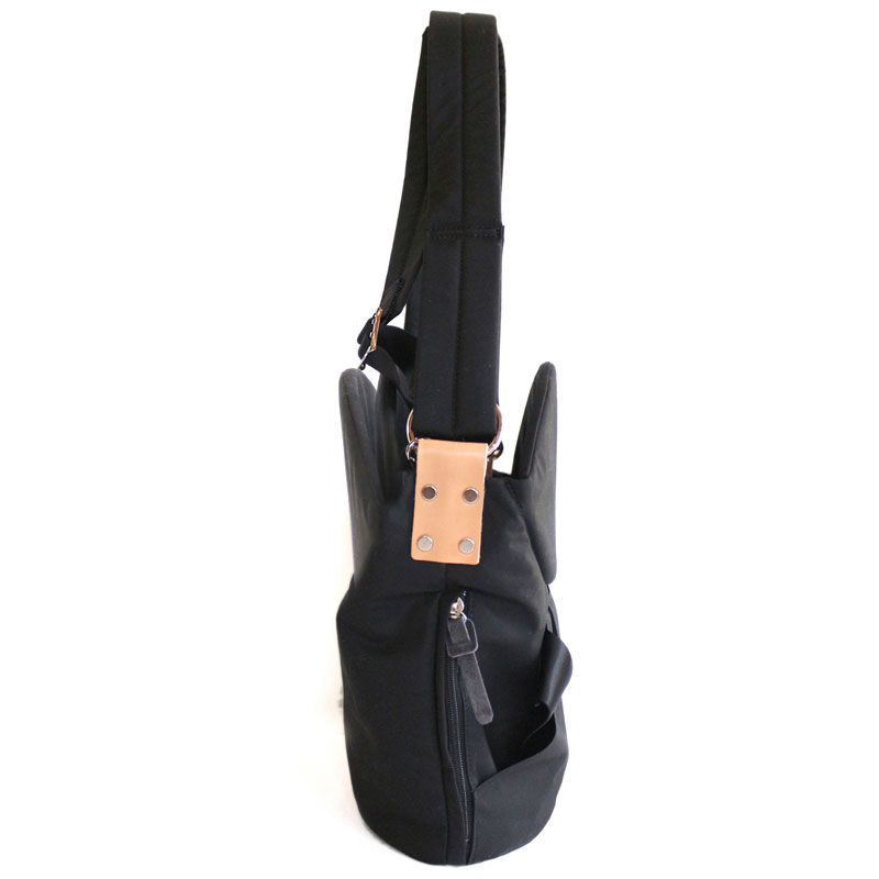 本体とショルダーベルトを繋ぐ役割をしているのが、大きめのアイアンリング。 抱っこバッグとしてお子さまの体重をしっかり支えることができ、二本のショルダーベルトをスッキリと見せることができます。