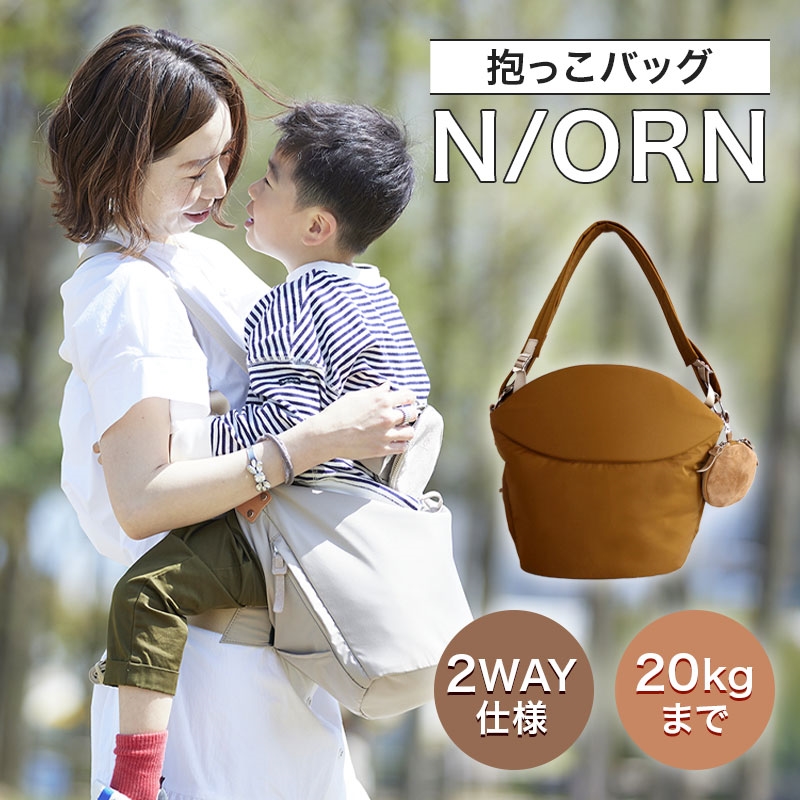 赤ちゃんの時と違って、少し大きくなってきたお子さまとのお出かけは ママにも少し余裕が出来ておしゃれが楽しめるようになります。 歩けるようになったとは言え、 ぐずったり寝てしまったりでまだまだ抱っこが必要。 抱っこひもだとかさばるし付け外しがタイヘン。 そんなママのためにノルンは誕生しました。 普段はオシャレなショルダーバッグ、いざという時だけ抱っこが出来、 『歩きたい』と言えばすぐに降ろせる商品です。 国産生地に内蔵したクッション素材が、 体に優しくフィットしたデザインです。 キッズサポーターになる付属のポーチにはピッグスエードを使用。 丸いフラップ(フタ)はしなやかに体に寄り添い、 太ベルトは優しく肩にフィットする仕様となっています。