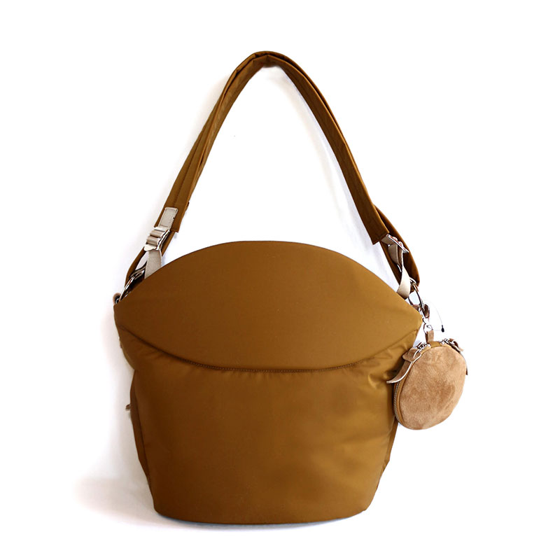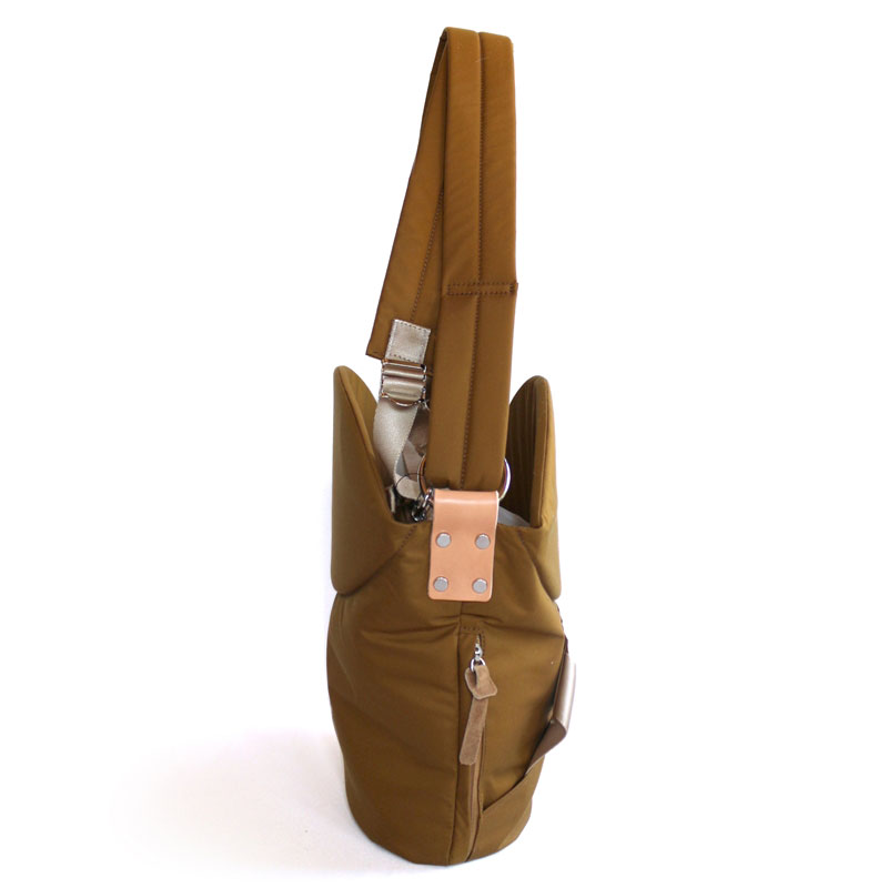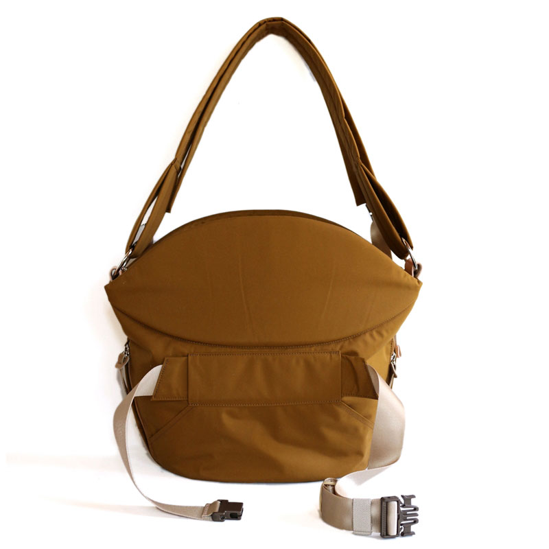 デザイナーを中心に職人、メーカースタッフ、モニター協力してくださった方々と共に約2年の歳月をかけ検討・試作を重ね、素手での抱っこを楽にしてくれる、シンプルでおしゃれなショルダーバッグが誕生しました。