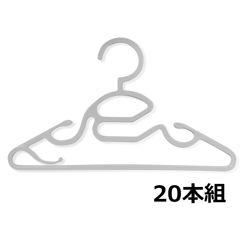 ●何かと多くなりがちな子供の衣類にピッタリな20本の大容量セット ●薄型で収納時も邪魔になりにくい ●干す際に、丸首シャツも引っ張ったり、 下からハンガーをくぐらせたりせず、簡単に首元から通せる形状を採用 ●肩ひものある洋服も掛けやすい ●タオルやハンカチを掛けやすいストッパー付き