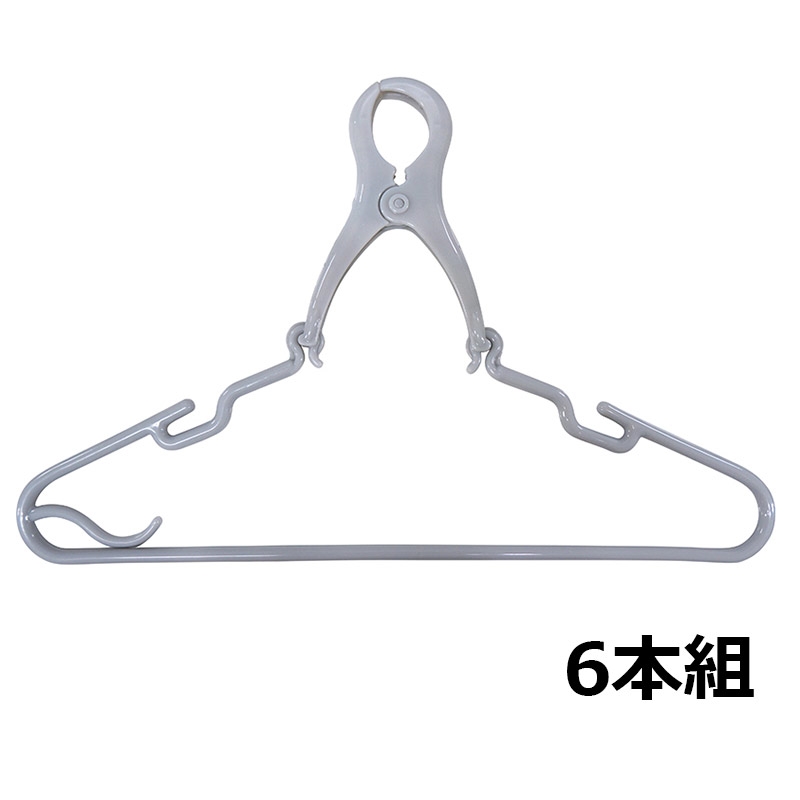 キャッチタイプの単品ハンガーの6本組。 物干し竿をしっかりキャッチしするので風でズレにくく、肩紐かけやタオル押さえが付いているので服やタオルなどを干すのに便利です。 シンプルなカラーでインテリアにもマッチします。
