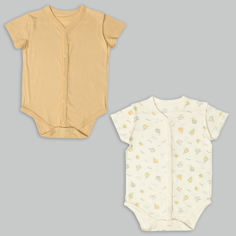 汗をかいても乾きやすい吸水速乾素材で、さらりと快適に過ごせます。 綿100%素材で肌ざわり柔らか。 前開きなので大きく開いてお着替えラクラク。 股ボタン開閉でおむつ替えもカンタンです。 洗い替えに便利な2枚組のロンパース