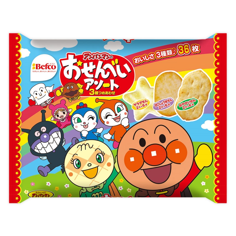 ●米菓 ●原材料名: 《おやさいせん》 米粉(うるち米(国産、米国産))、うるち米(国産、米国産)、植物油脂、食物繊維(イヌリン)、食塩、野菜粉末(ほうれん草、にんじん、オニオン、トマト、かぼちゃ、コーン)、発酵調味料(小麦・大豆を含む)、チキンブイヨン調味料(乳成分を含む)、粉末しょう油(小麦・大豆を含む)、ガーリックパウダー(大豆を含む)、チーズパウダー、砂糖、たんぱく加水分解物(大豆を含む)、でん粉、ブラックペッパー、ココアパウダー、酵母エキスパウダー/加工でん粉 《サラダせん》 米粉(うるち米(米国産、国産))、植物油脂、でん粉、食塩、砂糖、粉末しょう油(小麦・大豆を含む)、たんぱく加水分解物(大豆を含む)、オニオンパウダー、かつおエキスパウダー、酵母エキスパウダー、黒糖パウダー、ホワイトペッパー/加工でん粉 《甘口しょうゆせん》 米粉(うるち米(国産、米国産))、うるち米(国産、米国産)、植物油脂、砂糖、粉末しょう油(小麦・大豆を含む)、食塩、フラクトオリゴ糖/加工でん粉 ●内容量: おやさいせん 2枚×6袋 サラダせん 2枚×6袋 甘口しょうゆせん 2枚×6袋 《おやさいせん》 ・栄養成分:個包装(2枚)当たり 熱量 37kcal たんぱく質 0.4g 脂質 1.5g 炭水化物 5.5g 食塩相当量 0.08g 《サラダせん》 ・栄養成分:個包装(2枚)当たり 熱量 35kcal たんぱく質 0.2g 脂質 2.0g 炭水化物 4.1g 食塩相当量 0.15g 《甘口しょうゆせん》 ・栄養成分:個包装(2枚)当たり 熱量 30kcal たんぱく質 0.3g 脂質 1.1g 炭水化物 4.8g 食塩相当量 0.09g