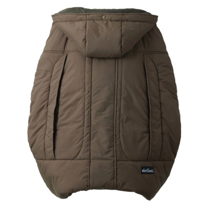 WILD THINGS Light is Right 軽くタフでなければいけない アメリカを代表する登山家である、マリー・ミューニエールとジョー・ボーチャードによって1981年に設立されたアウトドアブランド。 ミリタリーライクな素材・デザインを防寒ケープにアレンジたっぷり中綿で暖かさをキープ 軽量でしっかり暖かいサーモライトRエコメイド使用 ハンドウォーマー 暖かさをキープ すき間風を防ぐゴムシャーリングで赤ちゃんの足もとをカバー 前向き抱きに対応 ベビーカーにも取り付け可能 パッカブル仕様でコンパクト はっ水加工で雨や雪をブロック