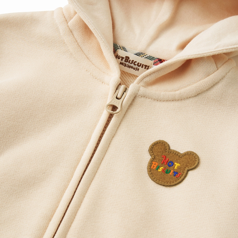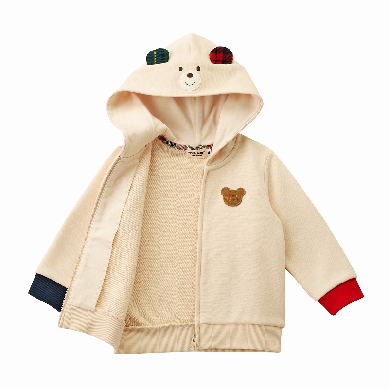 ●素材=裏毛パイル、(フード裏)40/2天竺、(格子部分)裏毛パイルプリント ●品質=綿 100%、(リブ部分) 綿 98%、ポリウレタン 2% ●寸法(約・cm)=100/110:身幅34/36、着丈 43/46、袖丈34.2/38