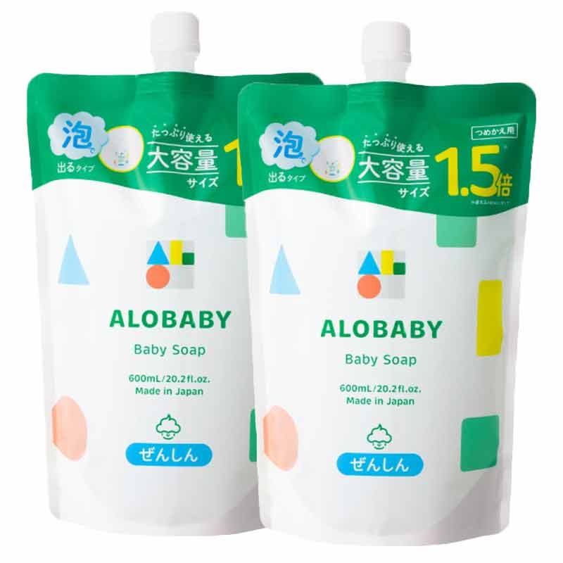 お得なつめかえ用。 頭も体もやさしく洗えるベビーソープ詰替え用がお得な2個セットに。 敏感な肌にやさしい弱酸性。 必要なうるおいを残して汚れを落とす。 泡切れがよく洗い流しも簡単。 泡立て不要のフォームタイプ。 赤ちゃんのお肌は大人の約半分の薄さしかなくデリケート。 アロベビー ベビーソープは、頭から体まで全身に使っていただけます。 また、石油系界面活性剤やパラベンなどは不使用。 赤ちゃんを洗うときに気になるのが泡残し。 泡残しは肌トラブルの一因になってしまうことも。 アロベビー ベビーソープはクリーミーな泡なのに、泡切れが良くサッと洗い流せる処方。 泡残しがなく、赤ちゃんのお肌に負担をかけません。