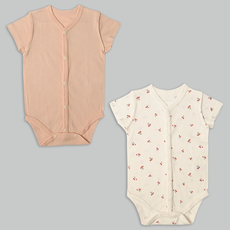 汗をかいても乾きやすい吸水速乾素材で、さらりと快適に過ごせます。 綿100%素材で肌ざわり柔らか。 前開きなので大きく開いてお着替えラクラク。 股ボタン開閉でおむつ替えもカンタンです。 洗い替えに便利な2枚組のロンパース