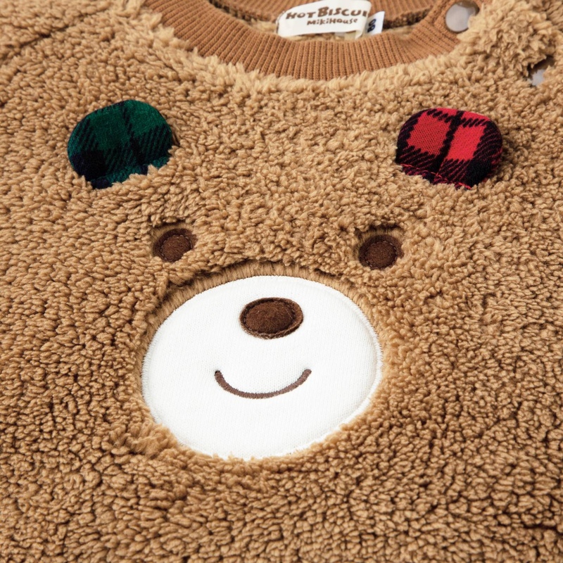 ミキハウス ホットビスケッツの顔ドン ボアフリーストレーナー。 人気の顔ドンシリーズのボアフリーストレーナー。 見た目も着心地もあたたかく、着ぐるみのようなかわいらしいデザイン。 どちらのカラーも性別問わず着ていただけます◎ 軽くて保温性抜群のボアフリース素材を使用。 優しい肌触りで、ふわふわとしたあたたかな雰囲気が季節感を感じさせる一枚です。 ●長袖 ●~90cmまで肩開き仕様