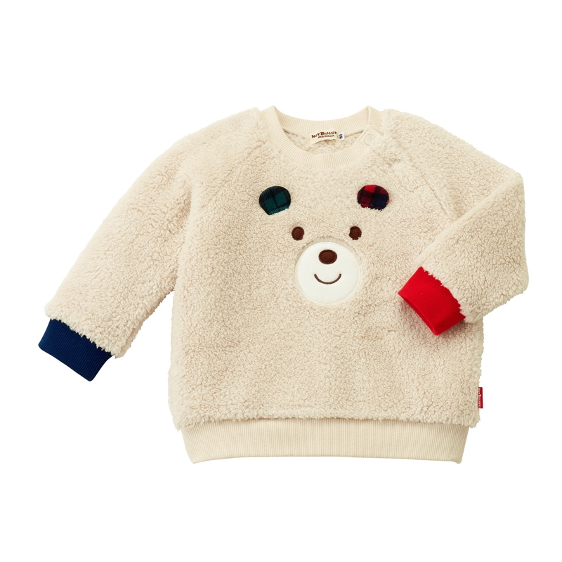ミキハウス ホットビスケッツの顔ドン ボアフリーストレーナー。 人気の顔ドンシリーズのボアフリーストレーナー。 見た目も着心地もあたたかく、着ぐるみのようなかわいらしいデザイン。 どちらのカラーも性別問わず着ていただけます◎ 軽くて保温性抜群のボアフリース素材を使用。 優しい肌触りで、ふわふわとしたあたたかな雰囲気が季節感を感じさせる一枚です。 ●長袖 ●~90cmまで肩開き仕様