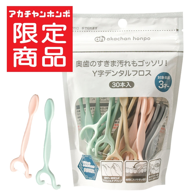 鹿児島大学小児歯科学分野との共同研究で奥歯や歯間に入りやすい角度と深さのY字デンタルフロスです。 細いポリエチレンが汚れをしっかりキャッチ。 縦持ち、横持ちの両方ができるマルチグリップでお子様の乳歯ケアがしやすい。