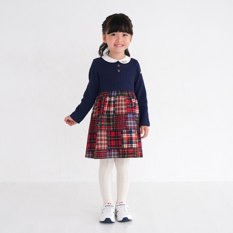 ミキハウス ホットビスケッツの襟付きチェック柄ワンピース。 毎年人気のチェックシリーズのワンピースが襟付きで登場! 結婚式・七五三・クリスマス・年末年始のご親戚の集まり などプチフォーマルのシーンにぴったり◎ トップス部分のケーブル編みの柄がおしゃれ☆ 生地が程よい厚みなので、秋には一枚で着られて、冬になっても羽織りを重ねて着やすいボリュームです。 スカート部分は、温かくやわらかな肌触りで吸水性に優れた裏毛パイル素材。 ●同じチェック柄のパンツ(73-3201-493)とのリンクコーデもおすすめ◎ ●長袖 ●背中のファスナーでお着替え簡単