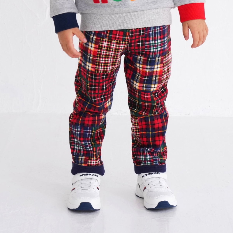 ミキハウス ホットビスケッツのチェック柄パンツ。