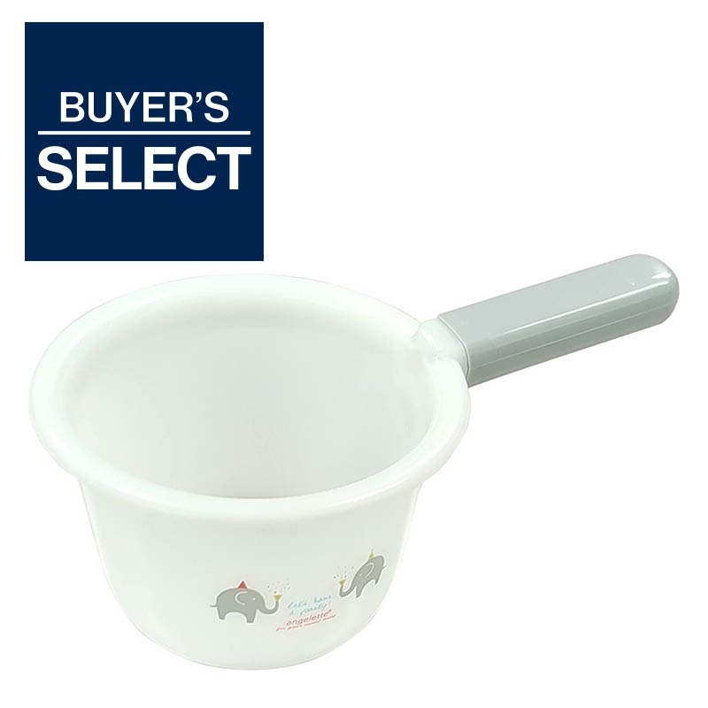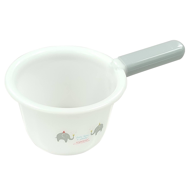 アンジェレッテのかわいいコンパクトサイズの片手おけ。 持ちやすいハンドル付きです。 コンパクトサイズの為、大きく場所を取りません。 かけ湯をする際、軽くて使いやすいサイズです。 側面にはアンジェレッテの象さんのデザイン入り。