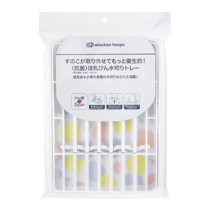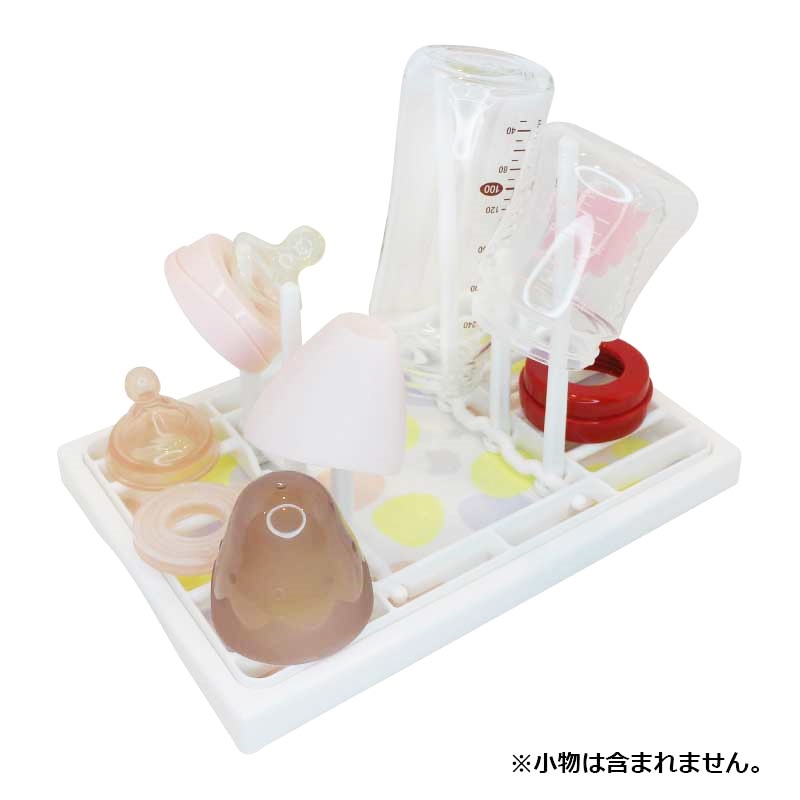 ●スタンドを立ててほ乳びんやペットボトルなどの水切りができます。 ●スタンドを折りたためばマグカップ・コップなどが置けるコンパクトな水切りトレーに。 ●折りたたみ式のスタンド&持ち運びに適したコンパクトサイズなので、帰省などの外泊場所でもスペースを取らずにほ乳びんの水切り・ほ乳びん立てにお使いいただけます。 ●他の食器等と分けて専用に水切りしたい場合などにも便利です。 ●スタンド付きすのこはトレーから取り外せますのでお手入れも簡単です。
