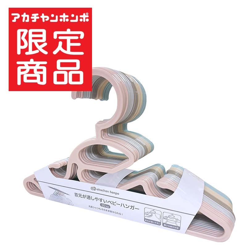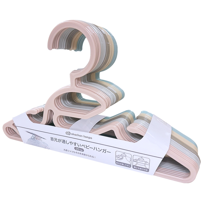 ●何かと多くなりがちな子供の衣類にピッタリな20本の大容量セット ●薄型で収納時も邪魔になりにくい ●干す際に、丸首シャツも引っ張ったり、 下からハンガーをくぐらせたりせず、簡単に首元から通せる形状を採用 ●肩ひものある洋服も掛けやすい ●タオルやハンカチを掛けやすいストッパー付き