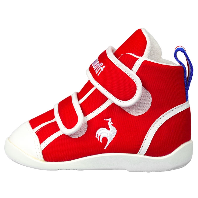歩き始めたお子さまに向けたファーストシューズです。アッパーには2本のベルトを採用する事でフィット感を高めるように設計しました。歩きやすさを考慮し、かかとを安定させ、カラダのバランスを取りやすくする為に外側より内側のヒールカウンターを長くしました。屈曲性のあるラバーのアウトソールには内側への倒れ込みを考慮した意匠を採用。快適な足入れと歩行時の内側への倒れ込みを考慮した設計です。前作よりも脱ぎ履きのしやすさを追求し、履き口を大きく開く設計にしました。インソール裏面には歩行時の屈曲を補助する溝を搭載し表面には足先に段差があり5本指での踏み込みをサポートします。
