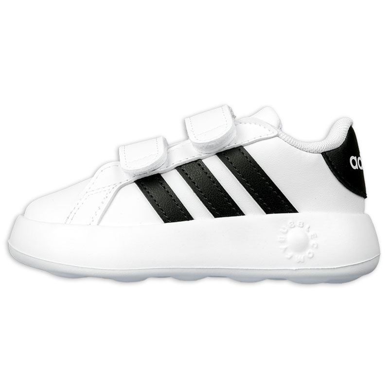 公園で遊ぶときや、親戚の家に行くときに履かせたい、小さな足を一日中快適に支えてくれるベビーシューズ。軽いシューズには面ファスナーストラップが付いているから、親が手伝うときはもちろん、小さな子どもが自分で脱ぎ履きするのも簡単。ミッドソールとアウトソールを組み合わせたワンピース構造のEVAバブルソールが、一歩一歩にクッション性を提供する。また、耐久性とデザイン性を両立させた、リサイクル素材から生まれた合成アッパーを組み合わせている。この製品には、リサイクル素材を20%以上使用。製造された製品の素材をリユースすることで、ゴミの量、限りある資源への依存、そしてアディダス製品のフットプリントを減らすことにつながる。