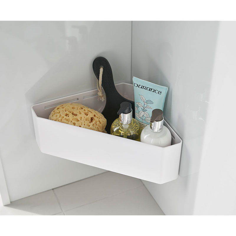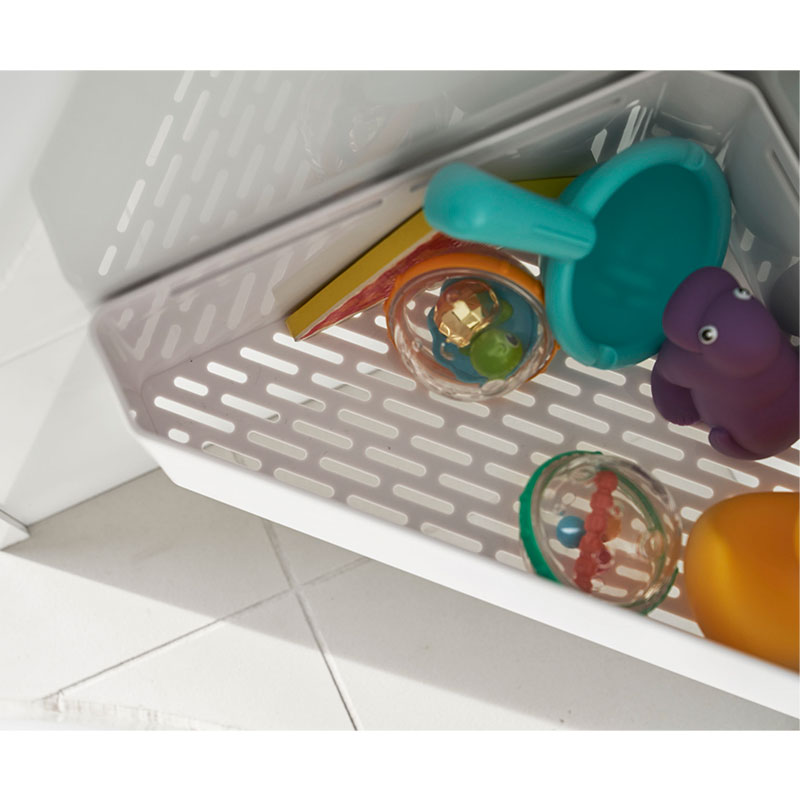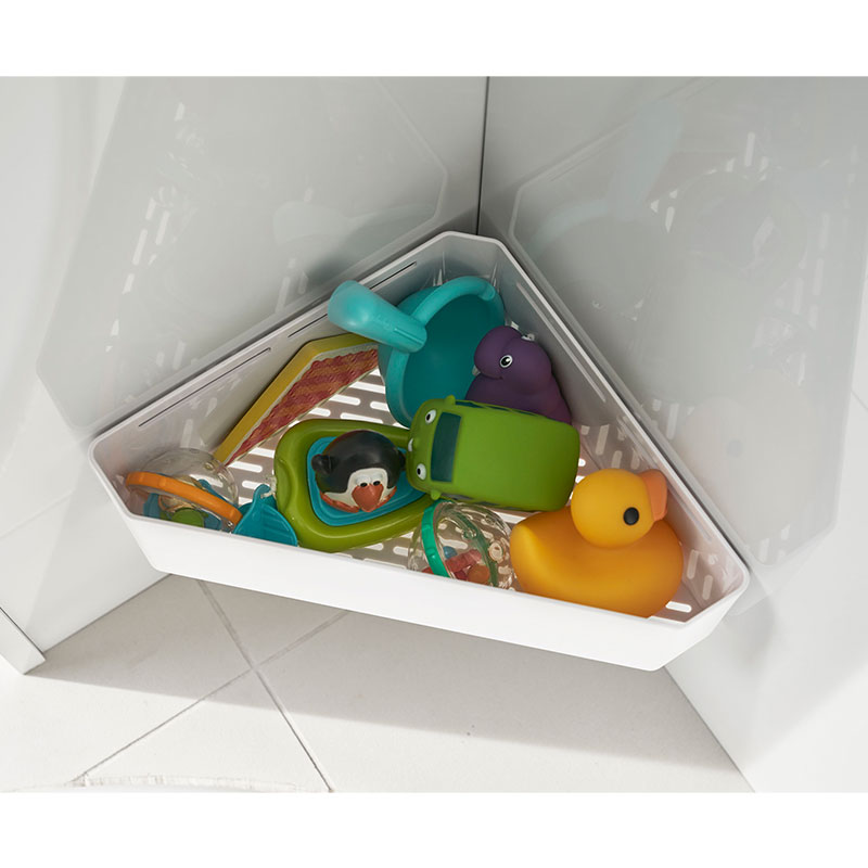 お風呂場の角はラックを取り付けても邪魔になりにくい最高の収納スペースです。 お子様のおもちゃ、ちょっとしたバスグッズ等、バラバラと散らばりがちな細々とある小物をコーナーラックで整理整頓。 マグネット取付タイプで見た目もスッキリ&安定感も抜群です。