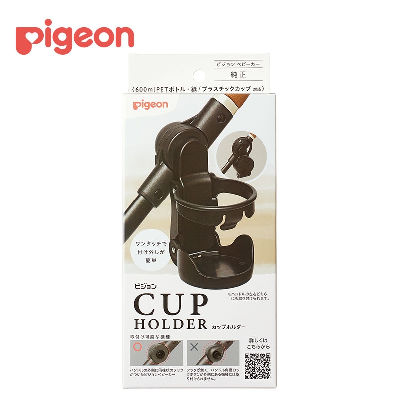 ●本製品は、ピジョンベビーカーの「ランフィ」「epa」シリーズに取り付け可能です。 ●折たたみ収納可能 折りたためば付けたままで駅の改札も通れます。 ●ワンタッチで付け外し簡単 ハンドルの左右どちらにも取り付けられます。 ●使用方法 取り付ける際は、カップホルダーの差込口をベビーカーのカップホルダーのフックにカチッというまで取り付け、 ドリンク容器をしっかりと奥まで差し込みます。 折りたたむ際は、上下のアームを持ち上げてください。 ※本製品は、フタ付きのボトルやカップを入れるためのものです。 大きさや形状によっては入れられないものがあります。 ※カップホルダーには、熱い飲み物が入った容器を入れないでください。 液体がこぼれた時にお子さまにかかり、ヤケドするおそれがあります。 ※高さ220mm以上の容器や走行時に、カップホルダー内で大きく揺れ動く容器は使用しないでください。 カップホルダーが不安定となり、容器が落下したり液体がこぼれたりするおそれがあります。