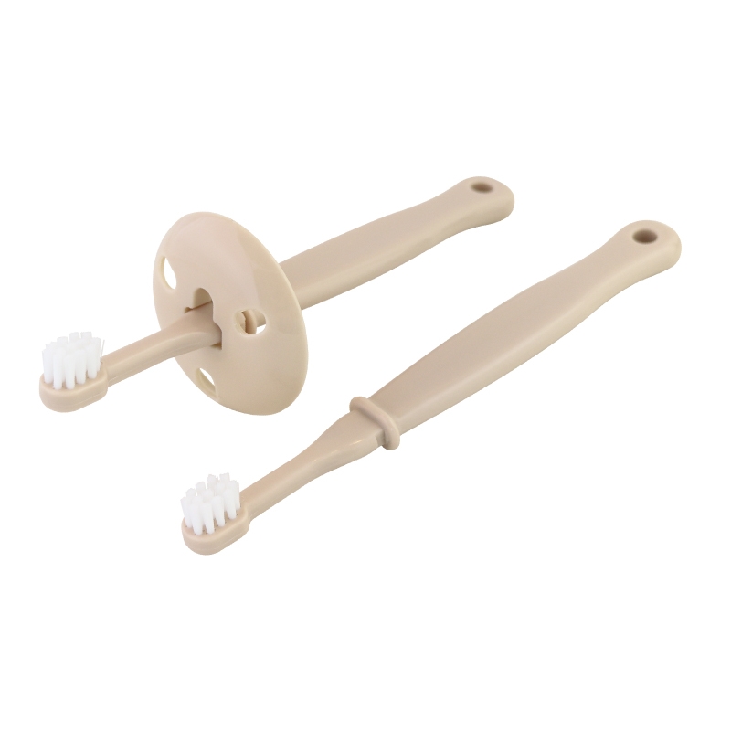 ソフトな毛で乳歯と歯ぐきにやさしい。 しっかりにぎれる太めのグリップで仕上げみがきにも使いやすい。 のど突きを防ぐガード付。
