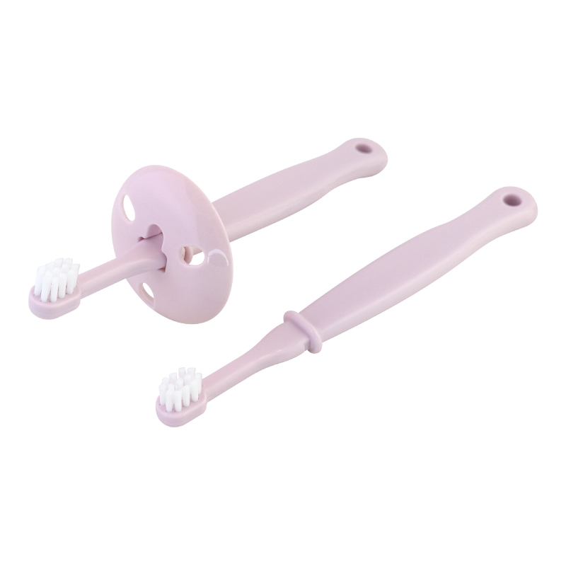ソフトな毛で乳歯と歯ぐきにやさしい。 しっかりにぎれる太めのグリップで仕上げみがきにも使いやすい。 のど突きを防ぐガード付。